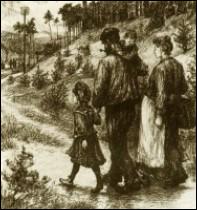 (Soiné, Knut: Joh.Peter Hasenclever. Neustadt/Aisch 1990,S.157)"Die bürgerliche Familie unterscheidet sich in zentralen Punkten von dem multifunktionalen Lebenszusammenhang des "ganzen Hauses":Dieser (neue) Bezug der Familie auf "einen privatisierten, auf emotional-intime Funktionen spezialisierten Teilbereich" und das "Leitbild der Ehe als Intimgemeinschaft" deuten sich in diesem Bild von Tischbein bereits an. Neidhardt kann daher sicher zugestimmt werden, wenn er in seiner Interpretation dieses Bildes schreibt: "Elternliebe und Familiensinn gehörten im Zeitalter der Empfindsamkeit zum Moralkodex des jungen, aufstrebenden Bürgertums."Hier noch zwei Zufallsfunde aus dem Biedermeider: Im linken Bild wird nur den männlichen Mitgliedern der Familie das Standmotiv, von dem bei Soiné im Zusammenhang mit Hasenclevers Familienbild die Rede war, zugebilligt, im rechten sehen wir wieder die bekannte Dreieckskomposition mit dem alle anderen Familienmitglieder überragenden (ordensgeschmückten)Vater: