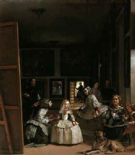 Es ist vielleicht nützlich, an dieser Stelle auf die Herkunft der Bildidee zu verweisen. Der Maler, das Porträt, die Porträtierten im Spiegel, eine Szene mit Kindern und das alles eingebunden in eine strenge Wirklichkeit des Raumes: diese illusionistische Bildidee stammt von Velazquez, der sie in seinem Gemälde Las Meniñas anwandte. Kompositionselemente wie der Maler im Bilde oder der Spiegel sind in der Malerei immer wieder aufgegriffen und variiert worden, Picasso hat sich im Herbst 1957 in einer umfangreichen Bilderserie intensiv mit Velazquez und den Meniñas auseinandergesetzt und sie neu gemalt, sie sich "völlig einverwandelt" (wie es bei Helen Kay in "Picassos Welt der Kinder", München/Zürich 1966, S.206 heißt). Picasso hatte dieses Bild im Prado gesehen, wo sich das Bild noch einmal in einem gegenüber angebrachten Spiegel spiegelt. Er stellte seine eigenen "Reflexionen über Reflexionen über Reflexionen" an (ebd.)