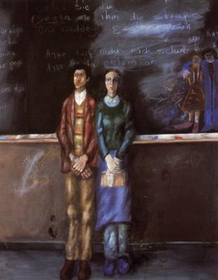 Die vorhandenen Texte weisen darauf hin, daß in diesem Bild neben der Thematik 'Fremde in zwei Welten' die (möglicherweise nicht gleich zu bemerkende) unterschiedliche Auffassung der Geschlechtsrollen angesprochen wird: