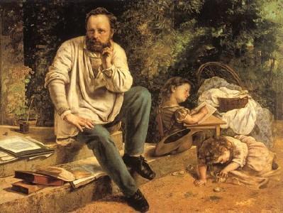 Courbet hat in Szenen aus dem Alltag seine Zeitgenossen porträtiert. Allerdings war Proudhon - ein französischer Philosoph und Schriftsteller - bereits im Januar 1865 gestorben. Courbet malte das Bild in Erinnerung an ihn und datierte die dargestellte Szene auf das Jahr 1853.