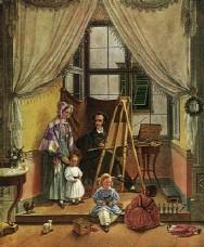 Auf diesem Bild hat Vater Harnier seine Kinder beim Spielen gemalt. Ihr werdet das Spielzeug auf dem kleinen Bild hier rechts nicht genau erkennen können.