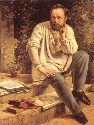 Courbet hat in Szenen aus dem Alltag seine Zeitgenossen porträtiert. Allerdings war Proudhon - ein franzö- sischer Philosoph und Schriftsteller - bereits im Januar 1865 gestorben. Courbet malte das Bild in Erinnerung an ihn und datierte die dargestellte Szene auf das Jahr 1853.