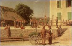 In Ankers Turnstunde von 1879/80 ist der zuletzt erwähnte Aspekt des Schulturnens nicht zu übersehen, vielleicht auch gerade deshalb, weil sich der Unterricht in der sommerlich-heiteren und friedlichen Umgebung eines Dörfchens abspielt. In zwei Reihen sind die Buben angetreten und üben abwechselnd den Gleichschritt nach dem Kommando und dem Taktschlag des Lehrers. Die Turngeräte, die vor dem neuen Schulhaus aufgebaut sind, lassen uns vermuten, was in den Turnstunden sonst noch alles geboten war. Die Mädchen sind am Turnunterricht nicht beteiligt, für sie steht statt dessen irgendwann das Fach Hausarbeit auf dem Stundenplan. Die beiden alten Bauern schauen dem neumodischen Treiben auf dem Schulhausplatz interessiert zu, in ihrer Schulzeit hat es so etwas noch nicht gegeben."